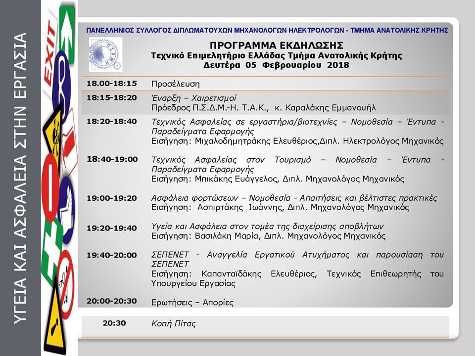Ο Π.Σ.Δ.Μ.-Η. Τ.Α.Κ. κόβει την πίτας του μετά την ενημερωτική εκδήλωση για την Υγεία & Ασφάλεια που διοργανώνει την Δευτέρα 05/02/2018 και ώρα 18:00, στην αίθουσα του Τ.Ε.Ε. Τ.Α.Κ.